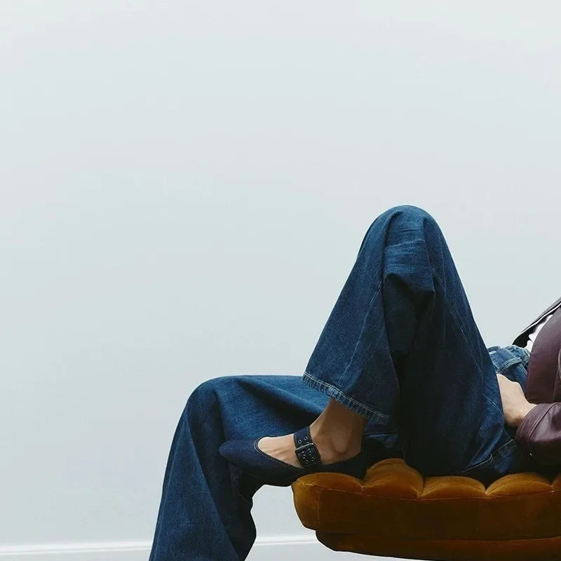 Blue Retro Denim Flat Shoes Women's Ballet Style Casual Footwear Comfortable