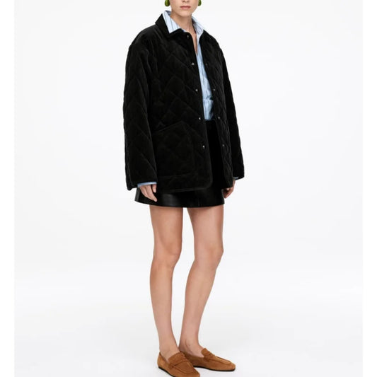 European and American style autumn and winter new diamond quilted thin cotton corduroy jacket