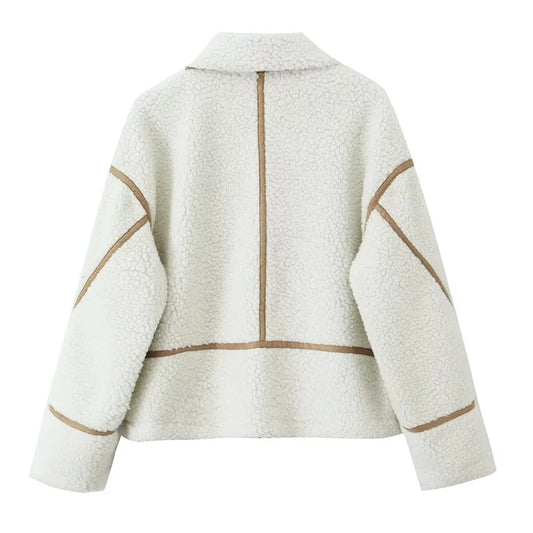 Retro Spliced Zipper Knitted Sweater Women Fashion Stand Collar Long Sleeve Loose Short Cardigan