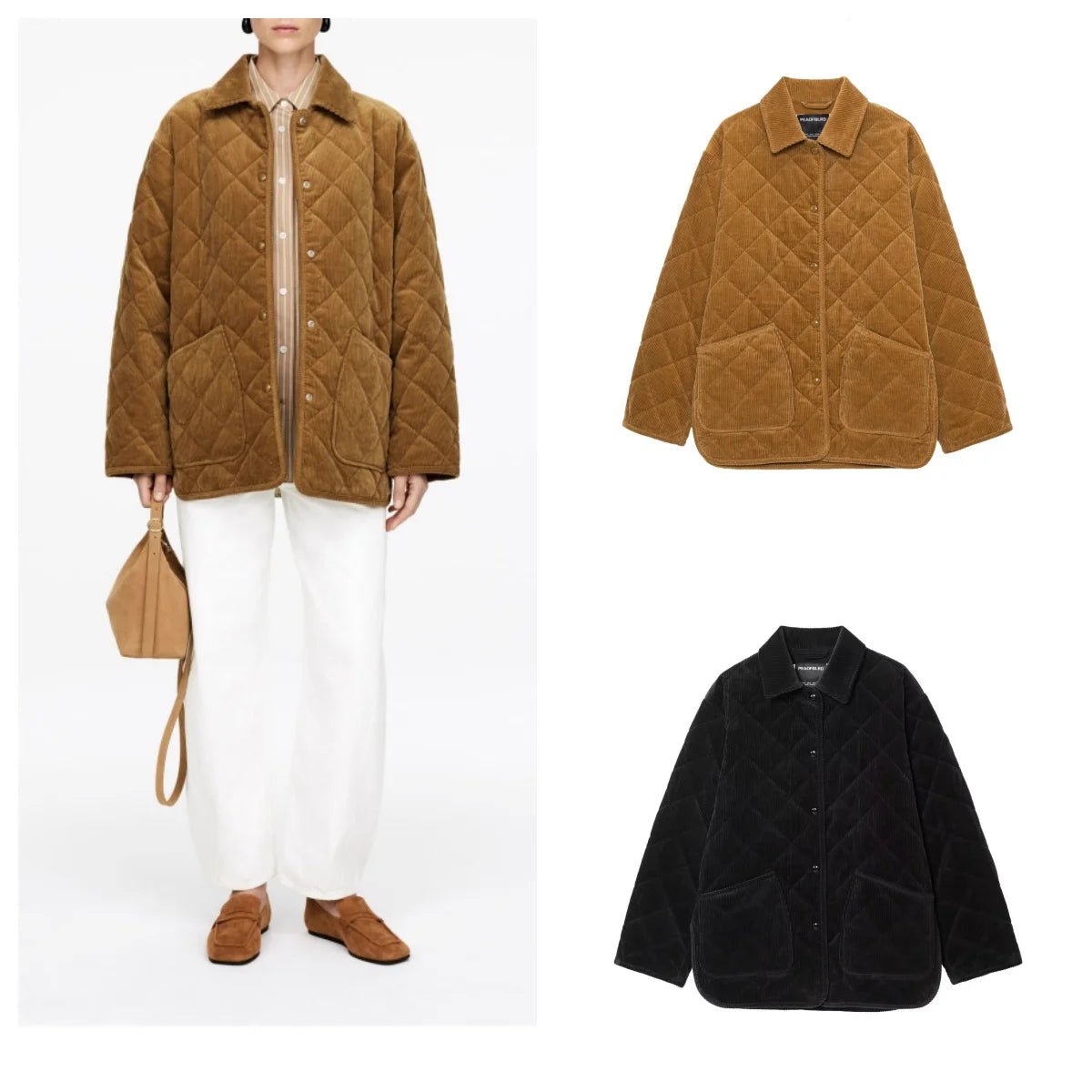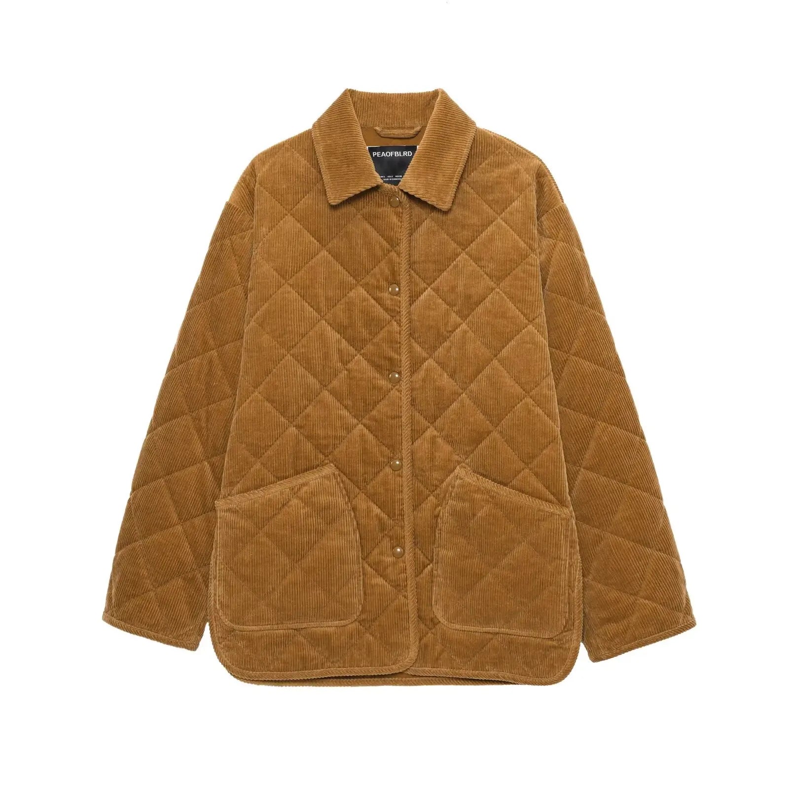 European and American style autumn and winter new diamond quilted thin cotton corduroy jacket