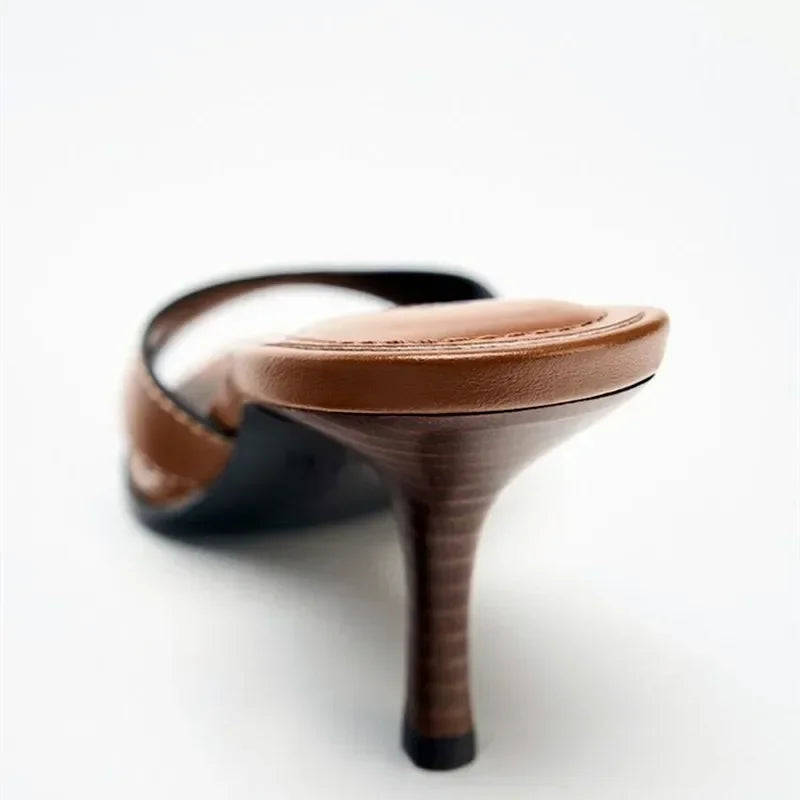 Retro Brown Sewing Design Brand Slippers Women