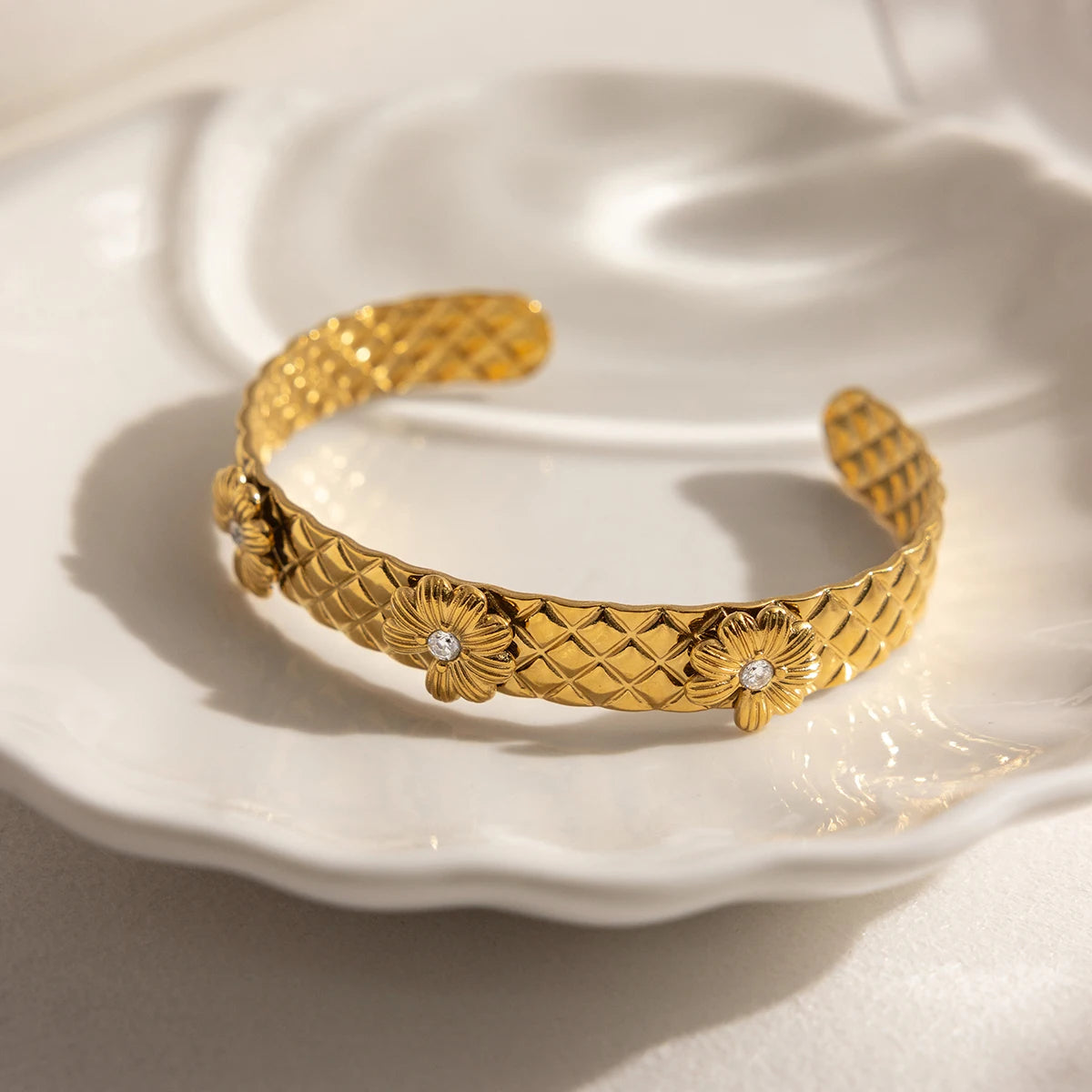 Exquisite Fashion Daisy Flower Bracelet Bangle For Women 18K Gold Plated Stainless