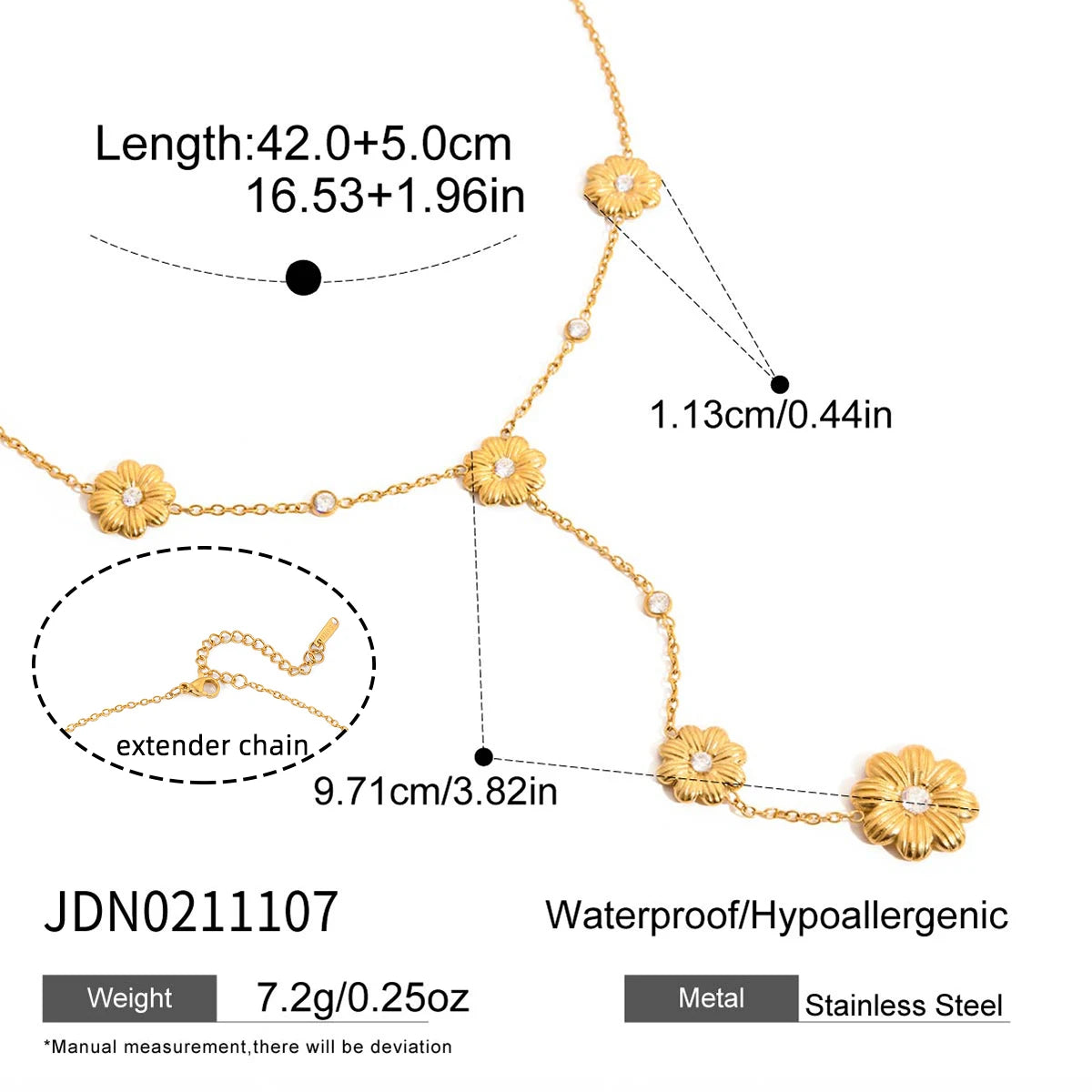 Sweet Flower Pendant Y-Shape Necklace Women's 18K Gold Plated Stainless