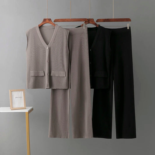 Casual Knitted Women's Set Sleeveless Vest Knitted Sweater plus Wide Leg Pants